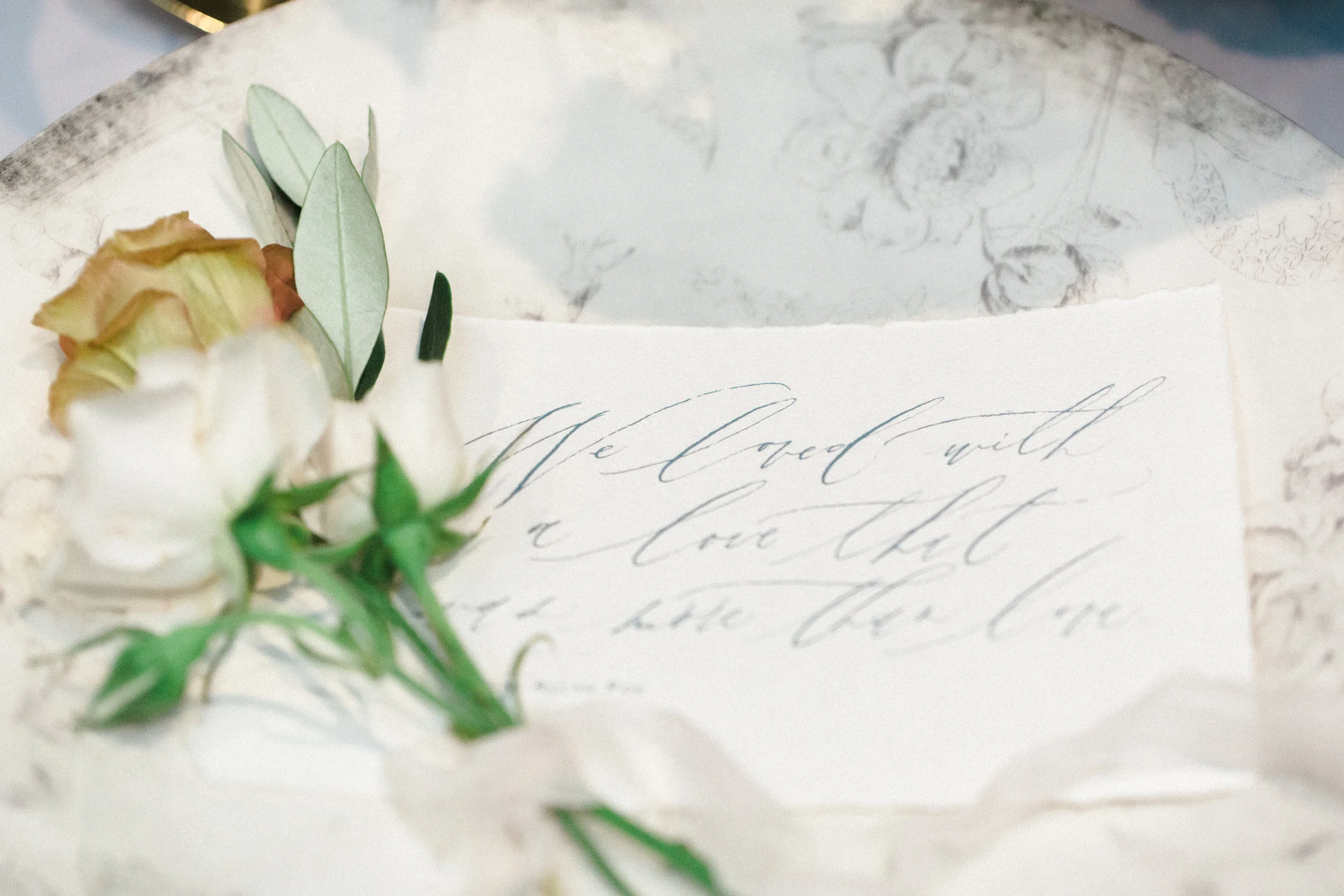 Then after placing your focal point, in this case the centerpiece, slowly pull color and detail from there. The light purple wine glasses and sweet little figs on each napkin echo the tones of the candlesticks and play off the deep shades in the arrangement.